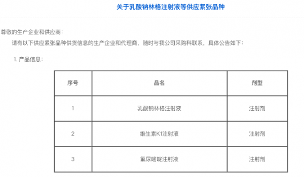 近日,浙江金益医药网发布一则消息称,有3个品种供应紧张,请生产企业和代理商,随时和他们联系。