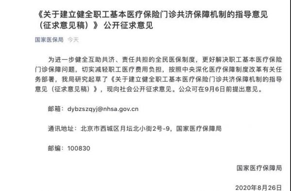 第一个扩大是门诊医疗费用报销水平提高。意见指出:建立完善普通门诊医疗费用统筹保障机制,从高血压、糖尿病等群众负担较重的门诊慢性病入手,逐步将多发病、常见病的普通门诊医疗费纳入统筹基金支付范围。普通门诊统筹覆盖全体职工医保参保人员,支付比例从50%起步,随着基金承受能力增强逐步提高保障水平,待遇支付可适当向退休人员倾斜。