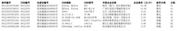 医用胶片拟中选企业包括锐珂(厦门)医疗器材有限公司、广西巨星医疗器械有限公司、辽宁三医科技有限公司等,上述三家企业报价分别为14.38元、14.46元、6.25元。
