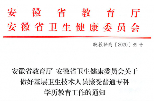 8月25日,安徽省教育厅、安徽省卫健委发布《关于做好基层卫生技术人员接受普通专科学历教育工作的通知》(以下简称《通知》)。