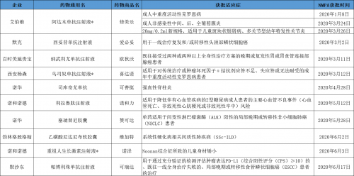 注:来源为RDPAC各会员企业资料及公开信息,数据截至2020年6月30日,*为《临床急需境外新药名单》中的上半年获批新适应症的新药