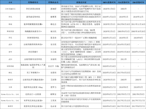 表1:2020上半年RDPAC会员企业获批上市新药汇总