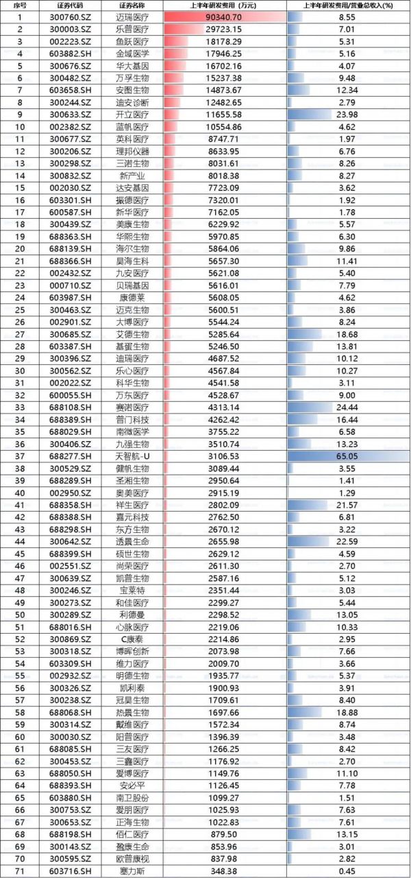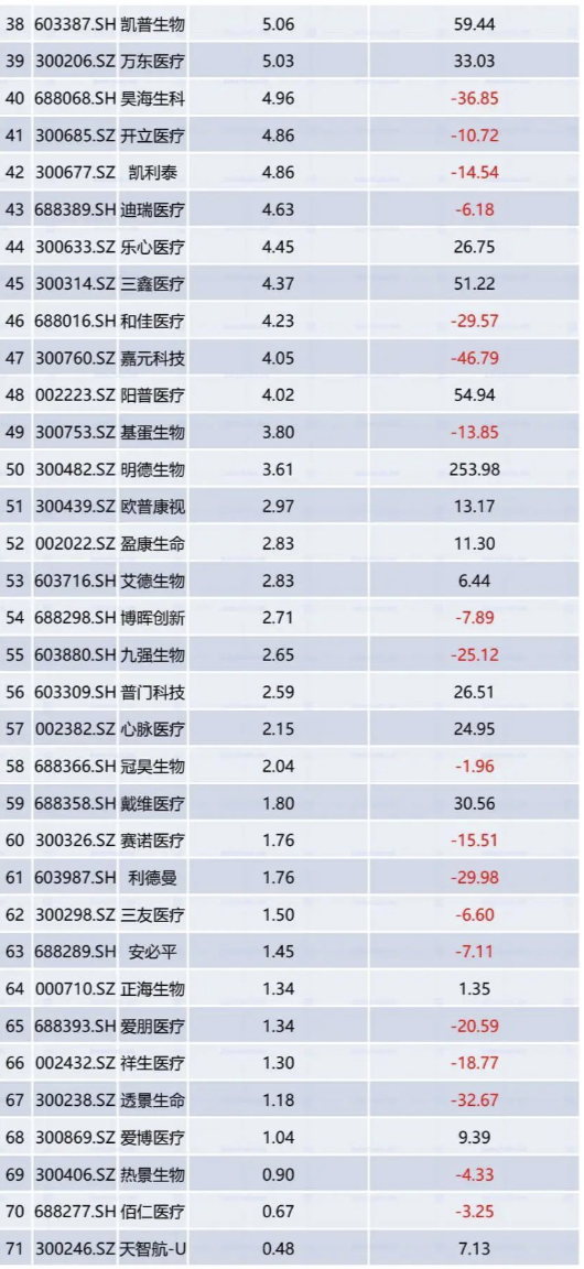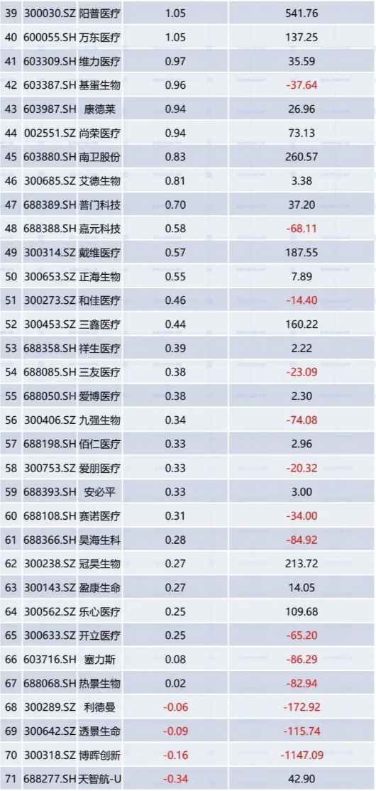 在营收增速上,圣湘生物最快,高达1159.4%;英科医疗增速超300%;健帆生物等7家械企增速超100%。但有25家企业出现下滑。