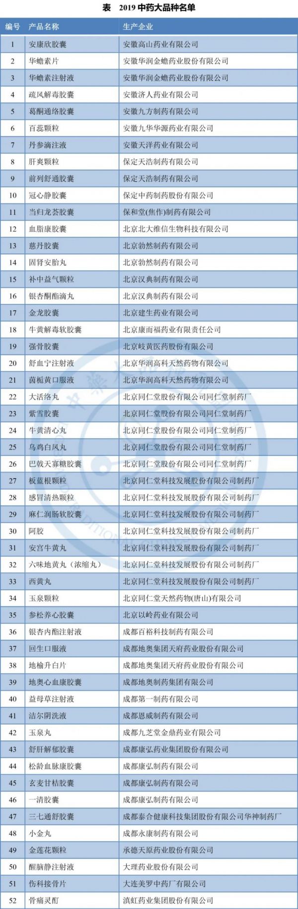 也就是说,上榜的产品基本为有临床优势的,科技含量高,特色显著的中成药,这一定程度上指引了行业向科技创新的方向发展。
