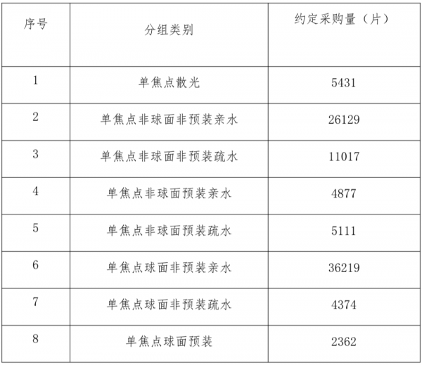 根据《河南省医用耗材集中带量采购文件》显示,约定采购量根据参与集中采购的医疗机构上报的2019 年总采购量 70%确定,对95520个人工晶体进行带量采购。