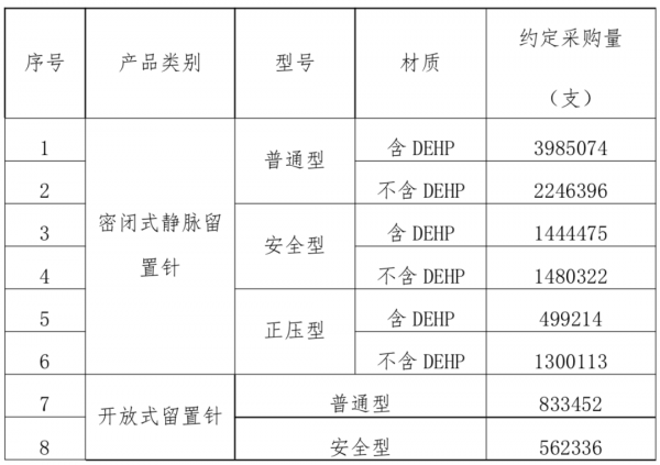 留置针类带量采购文件显示,约定采购量根据参与集中采购的医疗机构上报的 2019 年总采购量 80%确定,将对12351382个留置针进行带量采购。