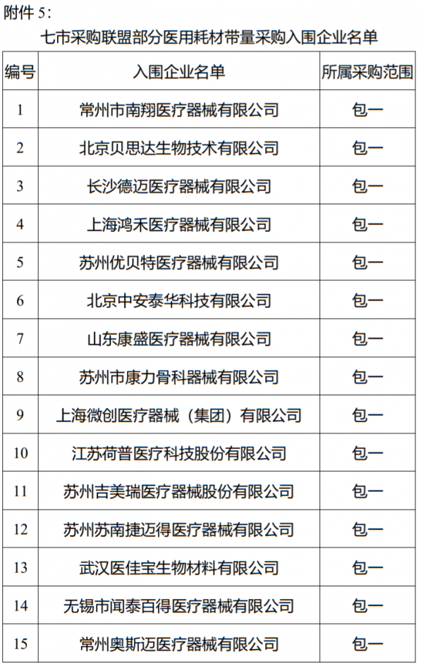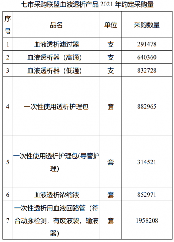 在此之前,10月14日,山东省淄博市医保局发布《七市采购联盟部分医用耗材带量采购方案》显示,七市(血液透析七市、骨科创伤五市)开展血液透析和骨科创伤业务的二级及以上公立医疗机构均参加此次联盟带量采购。