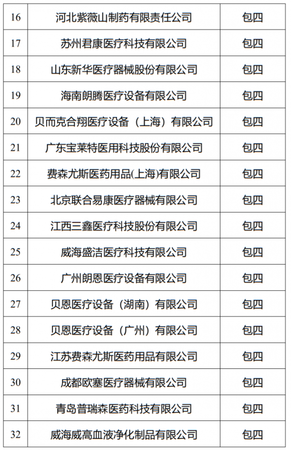 血液透析类产品涉及费森尤斯、山东威高、江西三鑫、河南省驼人医疗、江西洪达等械企。