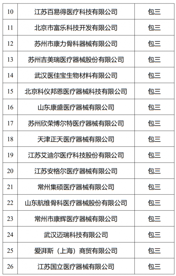 骨科创伤类产品涉及强生、史赛克、施乐辉、上海微创、山东威高、大博医疗、北京理贝尔、上海三友、捷迈医疗等械企;
