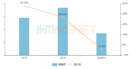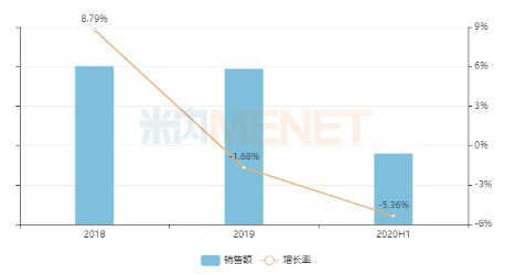 碘克沙醇注射液为造影剂中的TOP1品种,2019年在中国公立医疗机构终端销售额接近37亿元。2020上半年,领军企业江苏恒瑞医药市场份额高达53.01%,扬子江药业集团占比上升至12.61%。