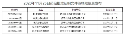 2020年11月,江苏奥赛康药业、扬子江药业集团、杭州中美华东制药的一致性评价补充申请均获批,本次南京正大天晴制药获批后成为该产品第四家过评企业。截至目前,南京正大天晴制药(不含子公司)过评/视同过评的注射剂有4个。