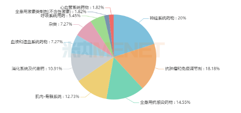 米内网数据显示,截至2020年11月25日,已过评/视同过评的注射剂产品有55个,神经系统药物、抗肿瘤和免疫调节剂的过评注射剂超过10个,全身用激素类制剂(不含性激素)、心血管系统药物过评的注射剂均仅有1个。