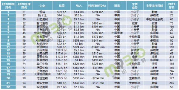 3 、这些药企,位列全球排名前50名