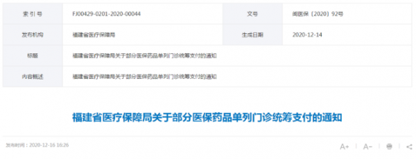 当然,被列入单列门诊统筹支付的医保药品,福建方面也还是会根据国家医保药品目录调整、该省门诊特殊病种和普通门诊政策变化等因素,进行动态调整。