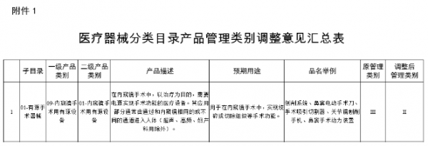 13类医疗器械目录内容进行调整。