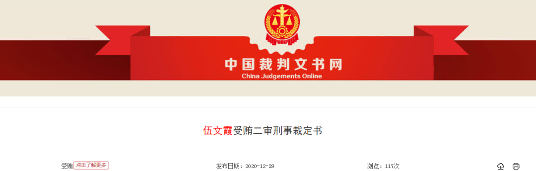 无独有偶,就在12月29日,中国裁判文书网也发布了一则关于,原攀枝花市妇幼保健院特检科主任伍某霞受贿二审刑事裁定书。