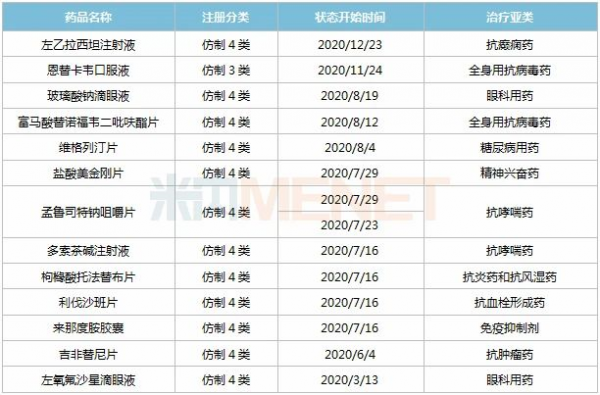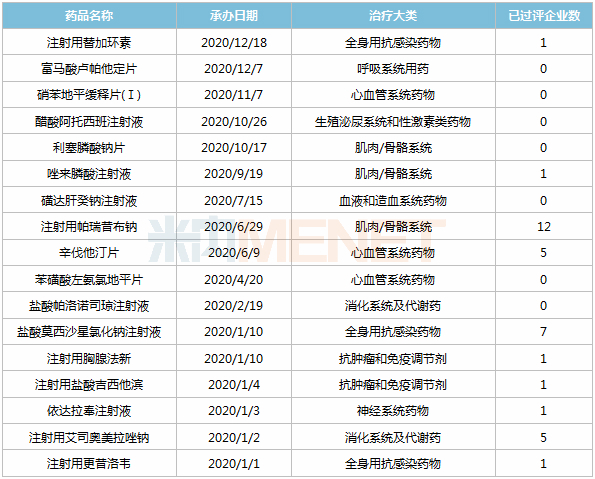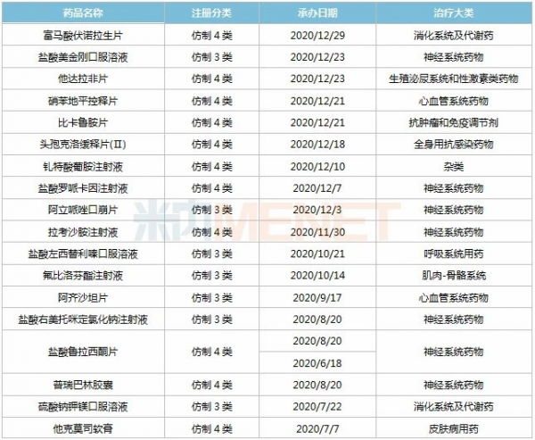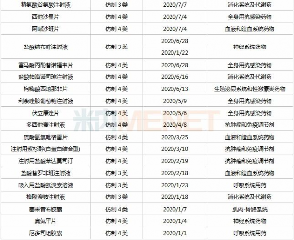 表4:2020年扬子江获得承办的一致性评价补充申请