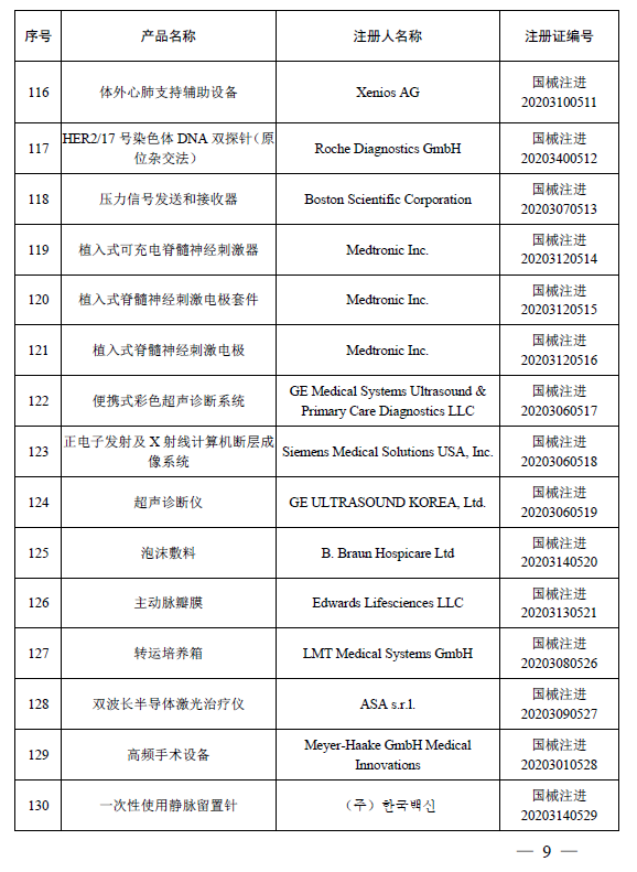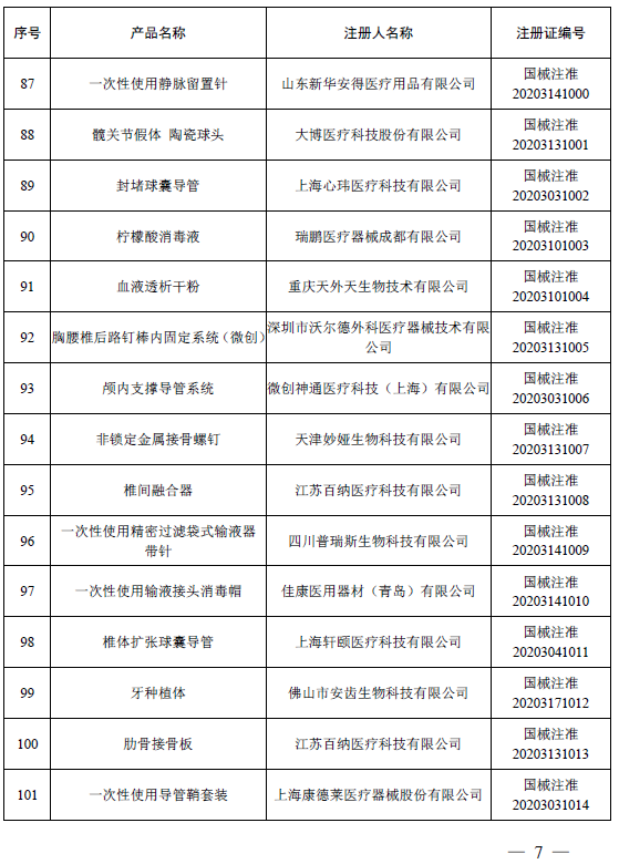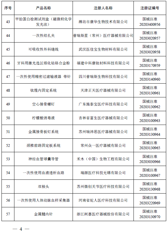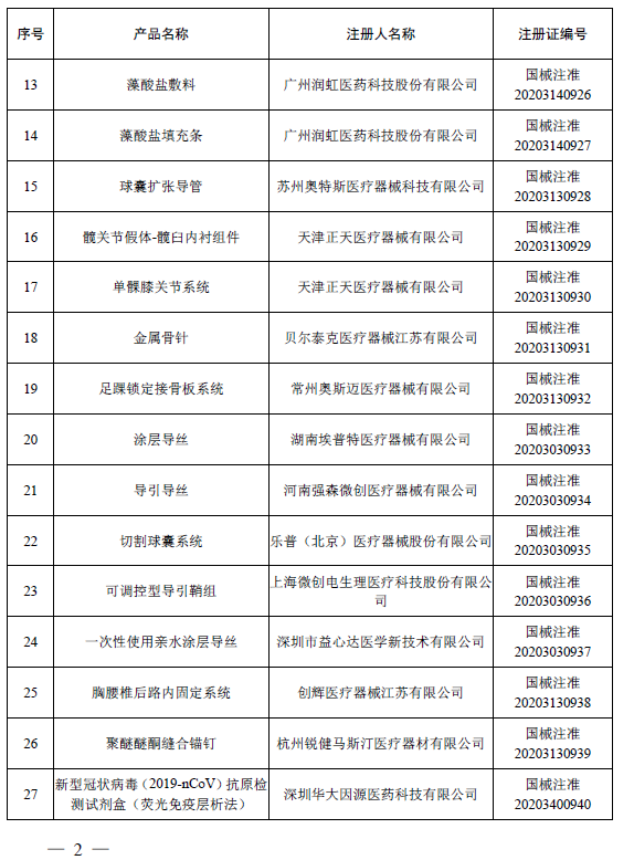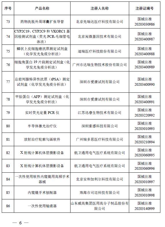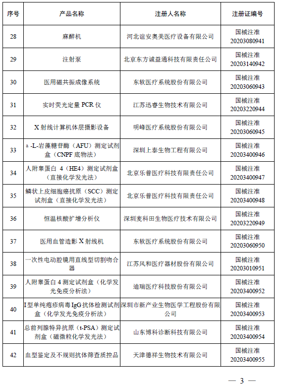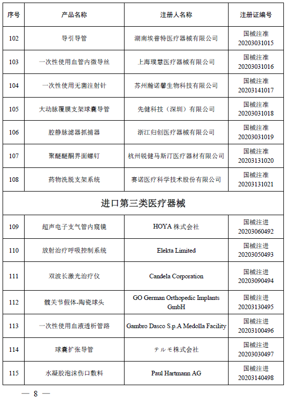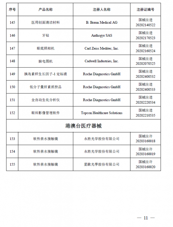 2020年12月,国家药品监督管理局共批准注册医疗器械产品155个。其中,境内第三类医疗器械产品108个,进口第三类医疗器械产品24个,进口第二类医疗器械产品20个,港澳台医疗器械产品3个(具体产品见附件)。