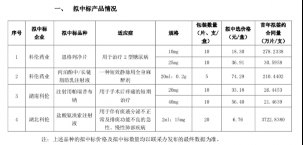 在此次集采中,科伦药业拟中标的注射剂丙泊酚中/长链脂肪乳注射液于2020年获批,科伦药业以最高报价14.858元中标。此次集采中标后即可迅速开拓市场,其供应区域为江西、湖北、广东、海南、重庆、云南、陕西。