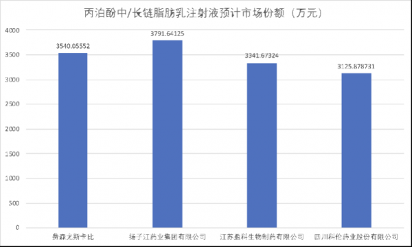除了费森尤斯卡比,丙泊酚中/长链脂肪乳注射液中标的还有扬子江、江苏盈科以及科伦,分别报价为12.5元、13.4元以及14.854元,并且皆于2020年10月份之后按4类获批并视同通过一致性评价。