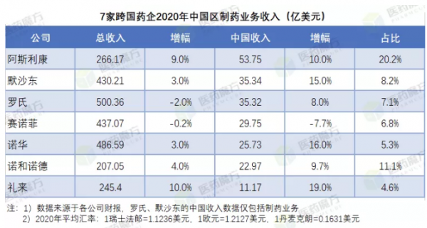 从具体数据来看,7家公布中国区制药业务收入的外企中,仅有赛诺菲的中国收入呈现(-7.7%)的负增长。