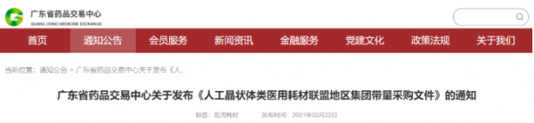 2月22日,广东省药品交易中心最新发布了一则关于开展《人工晶状体类医用耗材联盟地区集团带量采购文件》的通知(以下简称《通知》)。