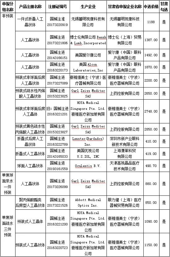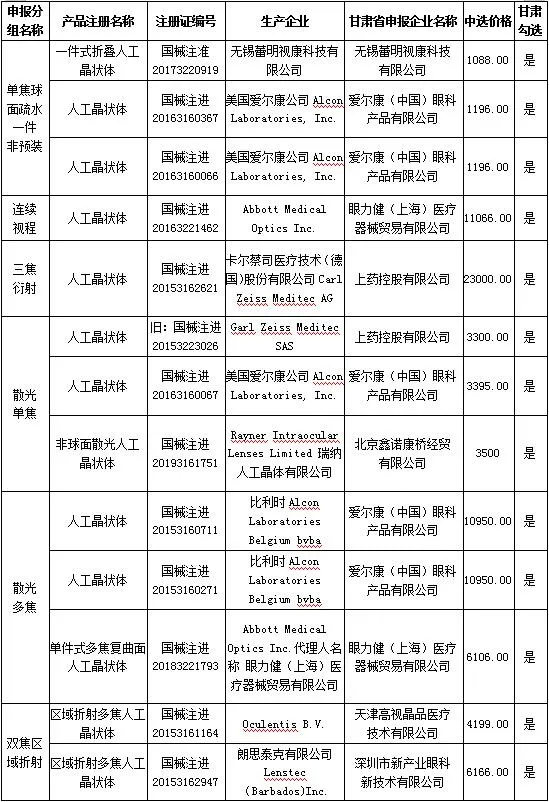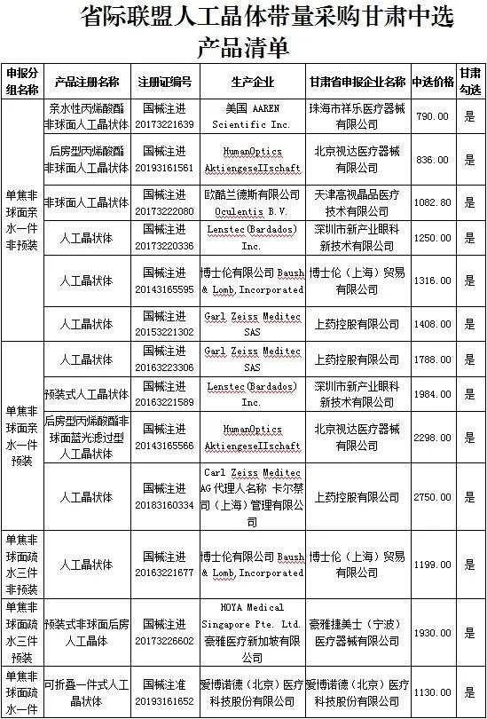 按照此前陕西省10省联盟人工晶体类高值耗材带量采购的要求,入围产品的申报价格必须为“全国最低省级挂网价”或“已开展带量采购省(联盟)中选价格”之中的低价。