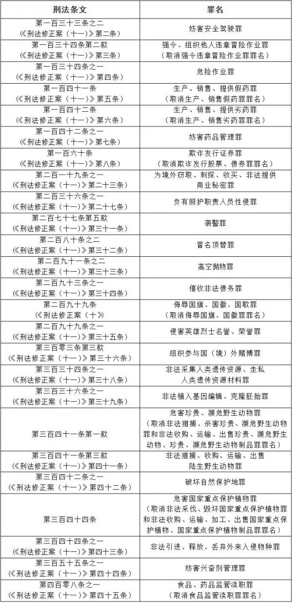 补充规定指出,根据《中华人民共和国刑法修正案(十)》、《中华人民共和国刑法修正案(十一)》,结合司法实践反映的情况,现对《最高人民法院关于执行<中华人民共和国刑法>确定罪名的规定》《最高人民检察院关于适用刑法分则规定的犯罪的罪名的意见》作如下补充、修改。