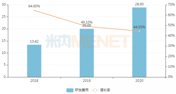 近日,石药集团的SKLB1028胶囊和SYHX1901片两款1类新药相继获批临床,并重金引进倍而达药业的BPI-7711胶囊(EGFR -TKI)和康诺亚生物的CM310(IL-4Rα单抗)。研发管线的推进与丰富,得益于公司大手笔的研发支出。近三年,石药集团在研发方面持续加大投入,研发费用复合增长率达到46.7%。2020年全年石药集团的研发费用大幅增加至28.9亿元,同比增长44.5%。