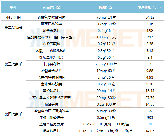 四批集采石药集团中选情况