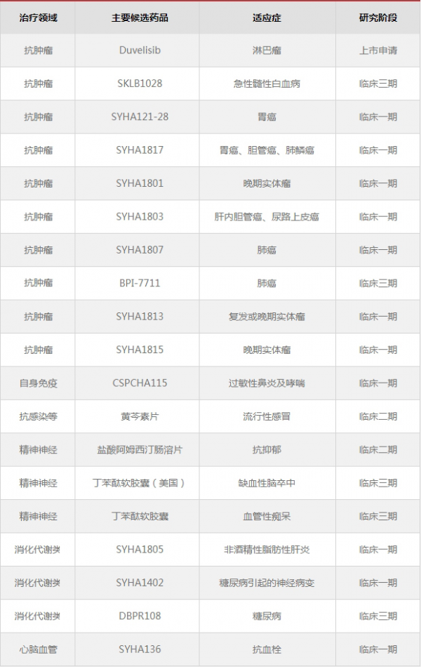 石药集团主要在研小分子创新药