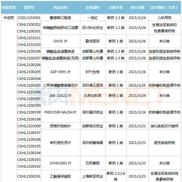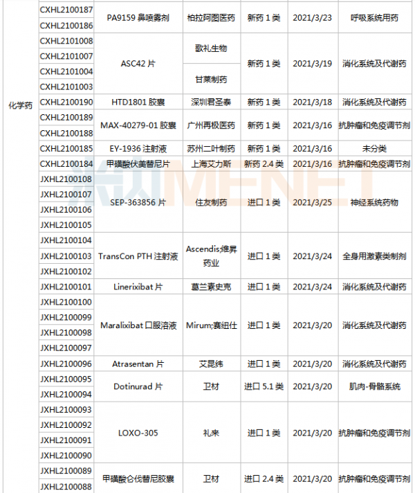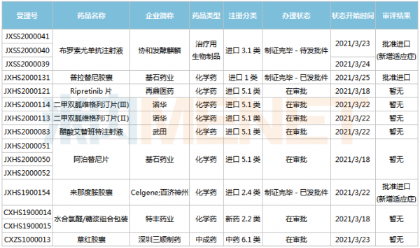 (3.13-3.26)获承办的国产/进口新药上市申请