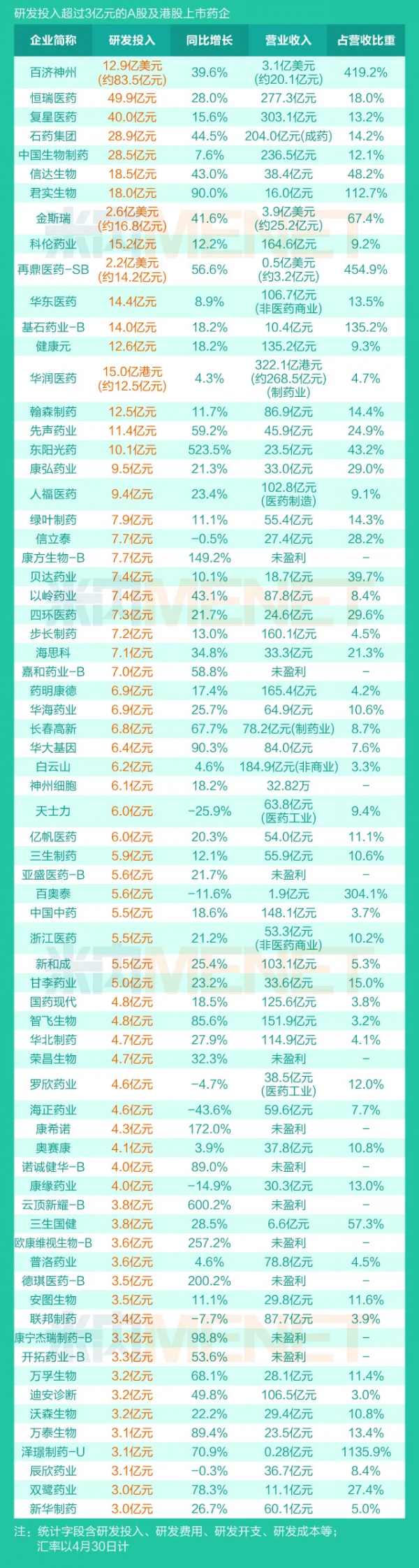70家药企研发投入公布:恒瑞、石药、科伦...