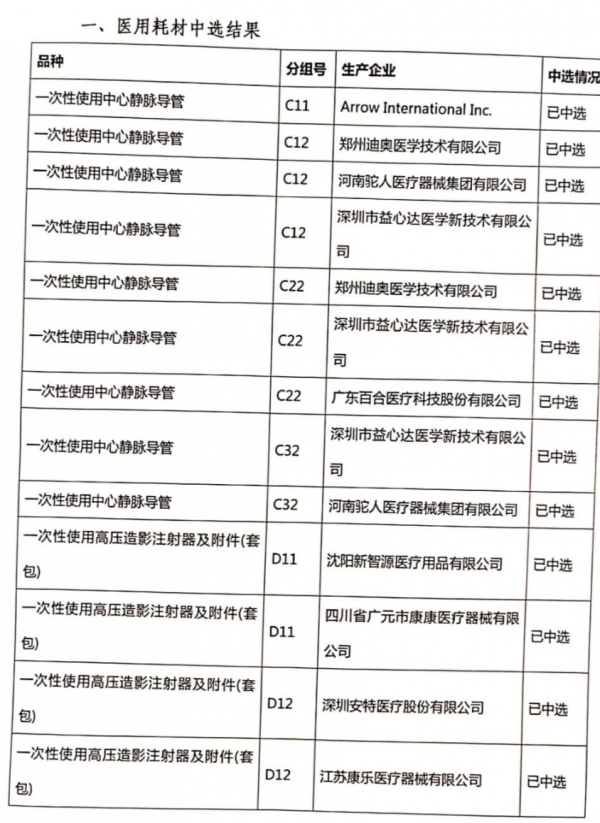5月11日,河南省新乡市医疗保障局公布了河南省新乡市等八市(县)医用耗材(试剂)联盟集中带量采购中选结果。