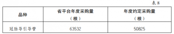 按照文件要求,本轮带量采购的品种为人工晶体类、冠脉扩张球囊类、双腔起搏器类、冠脉导引导丝类、冠脉导引导管类5大类高值耗材,约定采购量为省平台采购量的80%,总采购量为328567个。