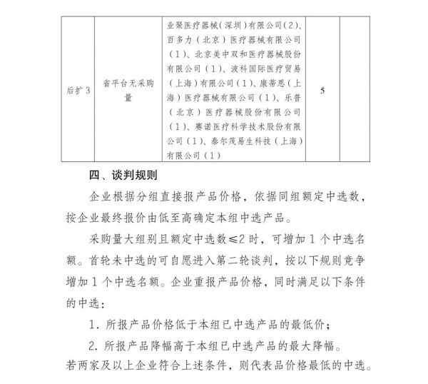 在企业的分组上,本次5大类高值耗材将按照省平台采购量占比≥10%、省平台有采购量占比<10%以及省平台无采购量三个标准进行分组,议价后价格最低者中选。