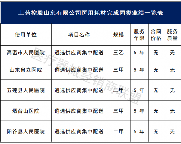 此前,在《济南市第四人民医院医用耗材集中配送供应商遴选及医用耗材供应链延伸服务[SPD]项目中标公告》中,就曝光了数家大型流通企业,自2016年以来拿下多家三甲医院、二甲医院的耗材集中配送情况(见文末),多家医院的服务期长达5年,配送规模高达数亿元!