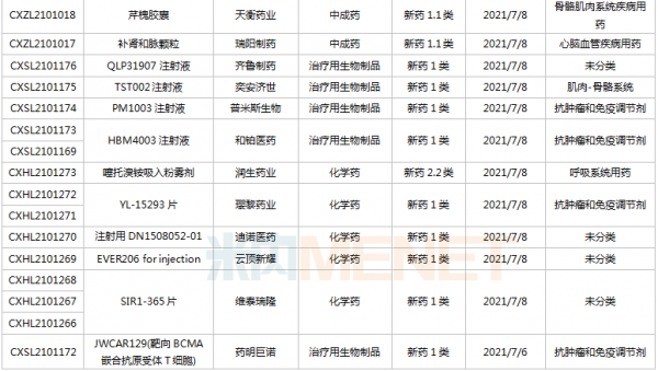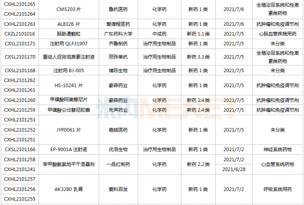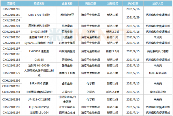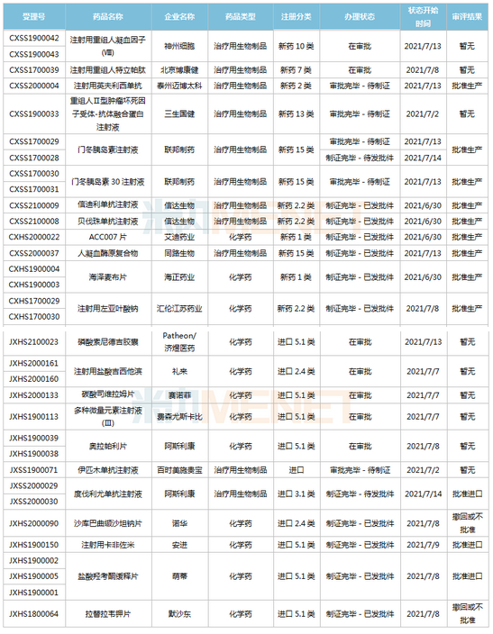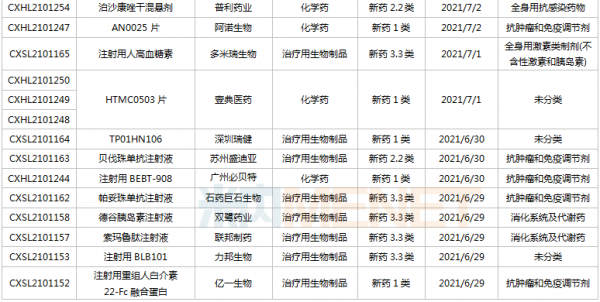 (6.26-7.16)新药上市申请审评审批状态更新