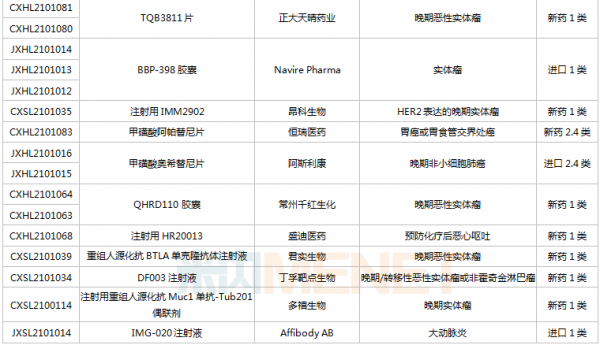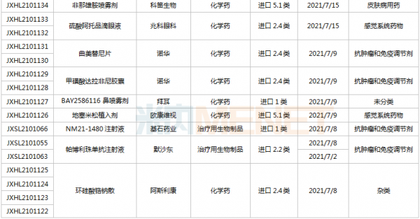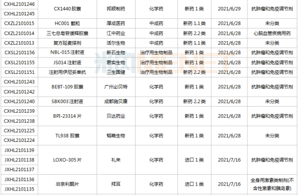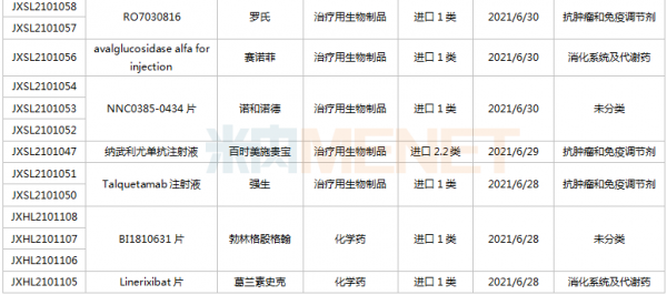 (6.26-7.16)获批临床的国产/进口新药
