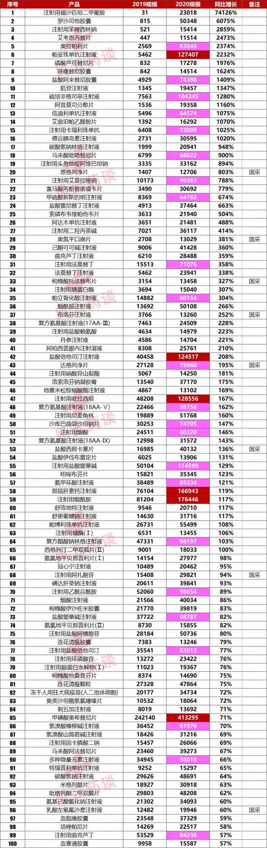上面是一组干巴巴的数据,下面风云药谈就类别做个简单的梳理;