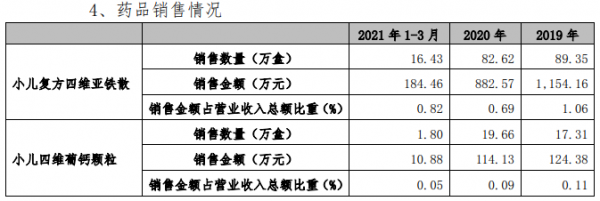销售表现不佳或是方盛制药转让小儿复方四维亚铁散、小儿四维葡钙颗粒的原因。公告显示,方盛制药的小儿复方四维亚铁散2019年、2020年销售额分别为1154.16万元、882.57万元;小儿四维葡钙颗粒2019年、2020年销售额分别为124.38万元、114.13万元。
