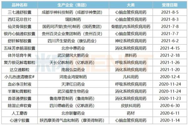 表1:2020至今提交初保申请并获得受理的中成药情况