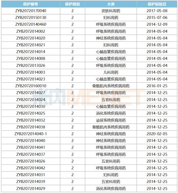 来源:米内网中国中药保护品种目录数据库