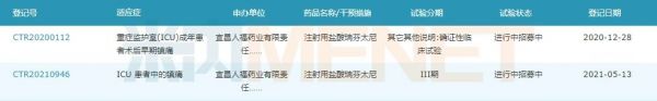 图3:人福的注射用盐酸瑞芬/太/尼新适应症临床情况