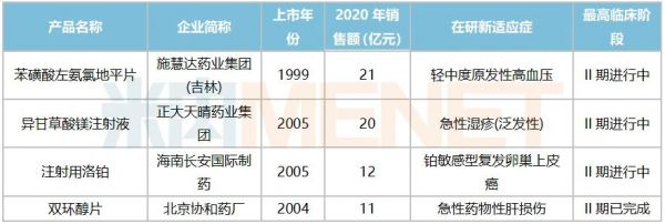 苯磺酸左氨氯地平片目前国内市场的竞争格局是11家国产企业获得批文,适应症为高血压病和心绞痛,2020年在中国公立医疗机构终端销售额接近40亿元,施慧达药业集团(吉林)的市场份额占52.24%,目前该品牌正在进行轻中度原发性高血压的II期临床。
