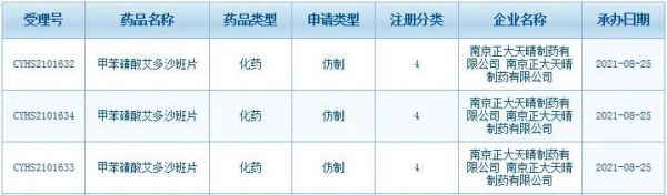 日前,CDE官网显示,南京正大天晴以仿制4类报产的甲苯磺酸艾多沙班片获受理。米内网数据显示,艾多沙班2020年全球销售额达1541亿日元(约14亿美元),在中国公立医疗机构终端和中国城市实体药店终端艾多沙班合计销售额不足1000万元,目前,甲苯磺酸艾多沙班片生产厂家仅有原研的第一三共。今年6月,海南先声药业的甲苯磺酸艾多沙班片以仿制4类提交上市申请,是该产品首家报产的国内企业。