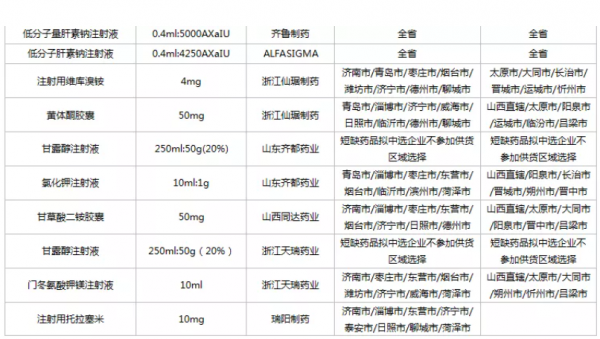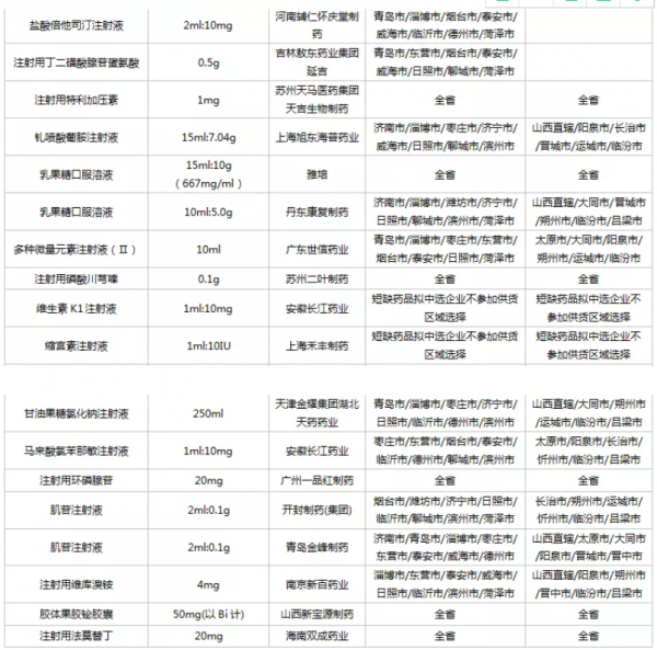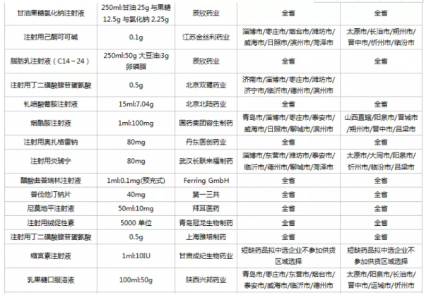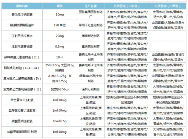 鲁晋省际联盟药品集中带量采购报价产品拟中选结果