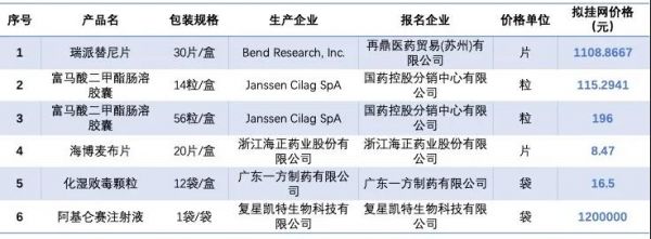 广东新获批上市的新品种拟挂网价格信息公示表(第三批)
