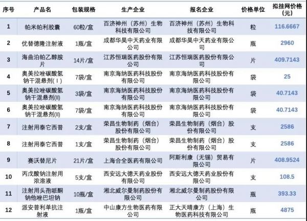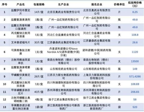 广东新获批上市的新品种拟挂网价格信息公示表(第一批)
