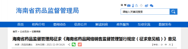 11月9日,海南省药监局发布《海南省药品网络销售监督管理暂行规定(征求意见稿)》(以下简称《规定》),以支持互联网处方药销售,并保障公众用药安全。